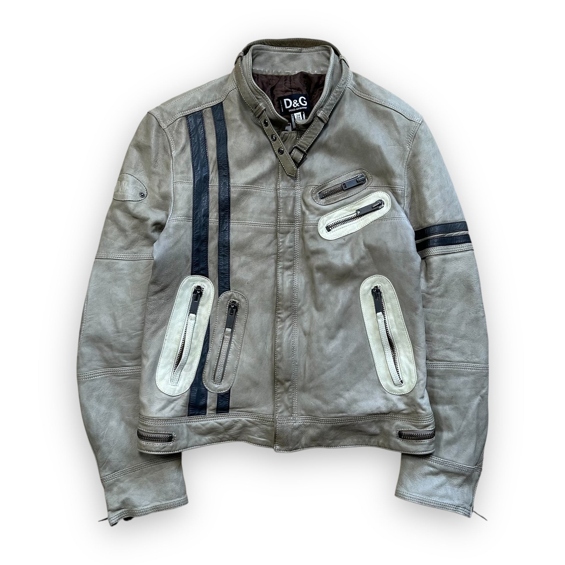 Jacket Dolce & Gabbana Leather Astro Biker Cafe Cream FW04 (S)